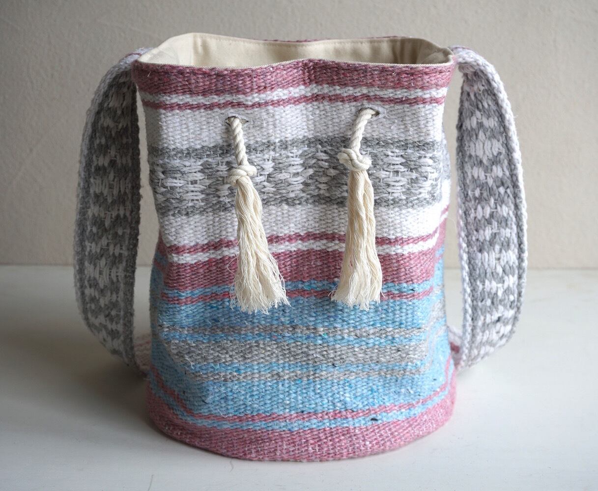 ペールトーンカラーリングが可愛いUSEDのメキシカンブランケットで作った、